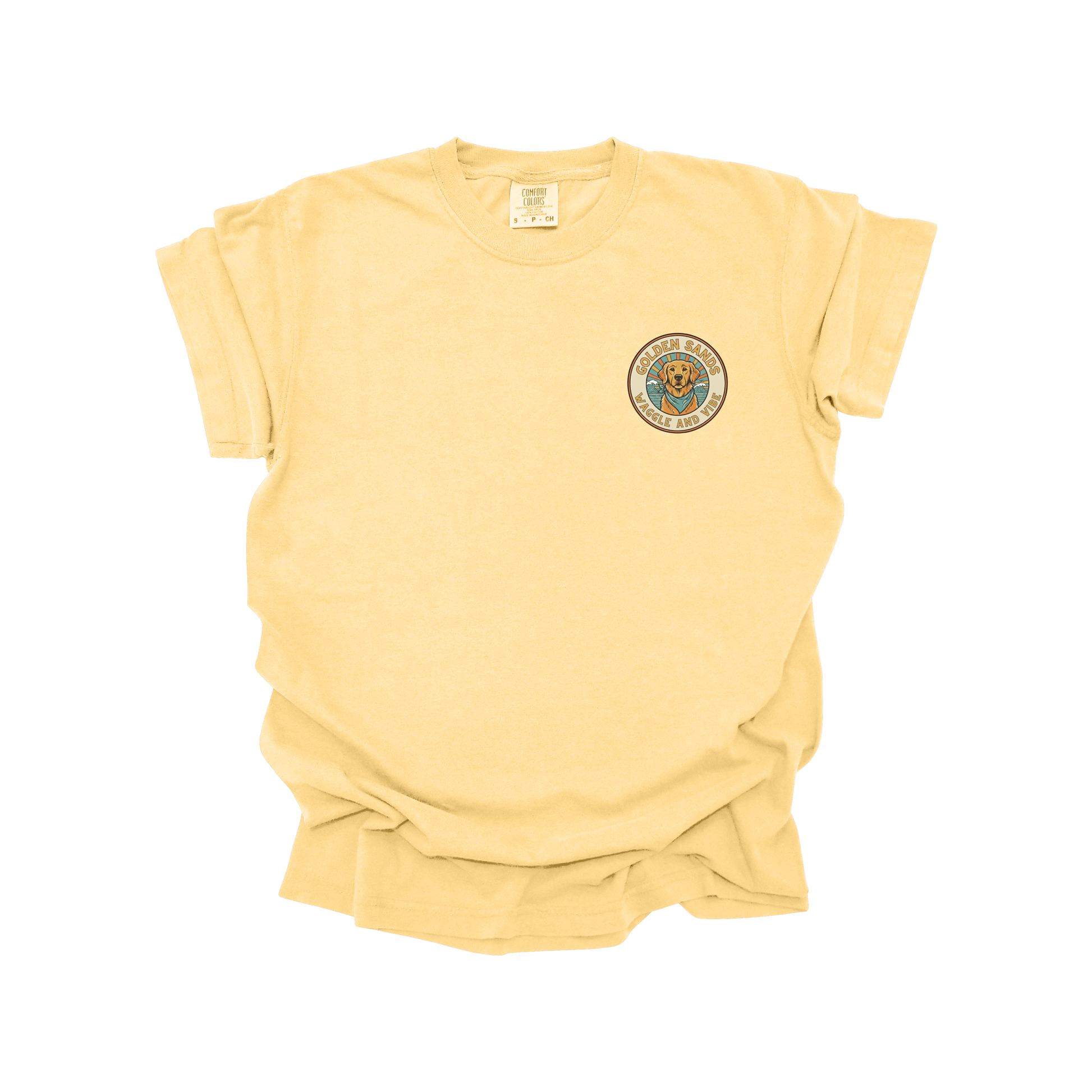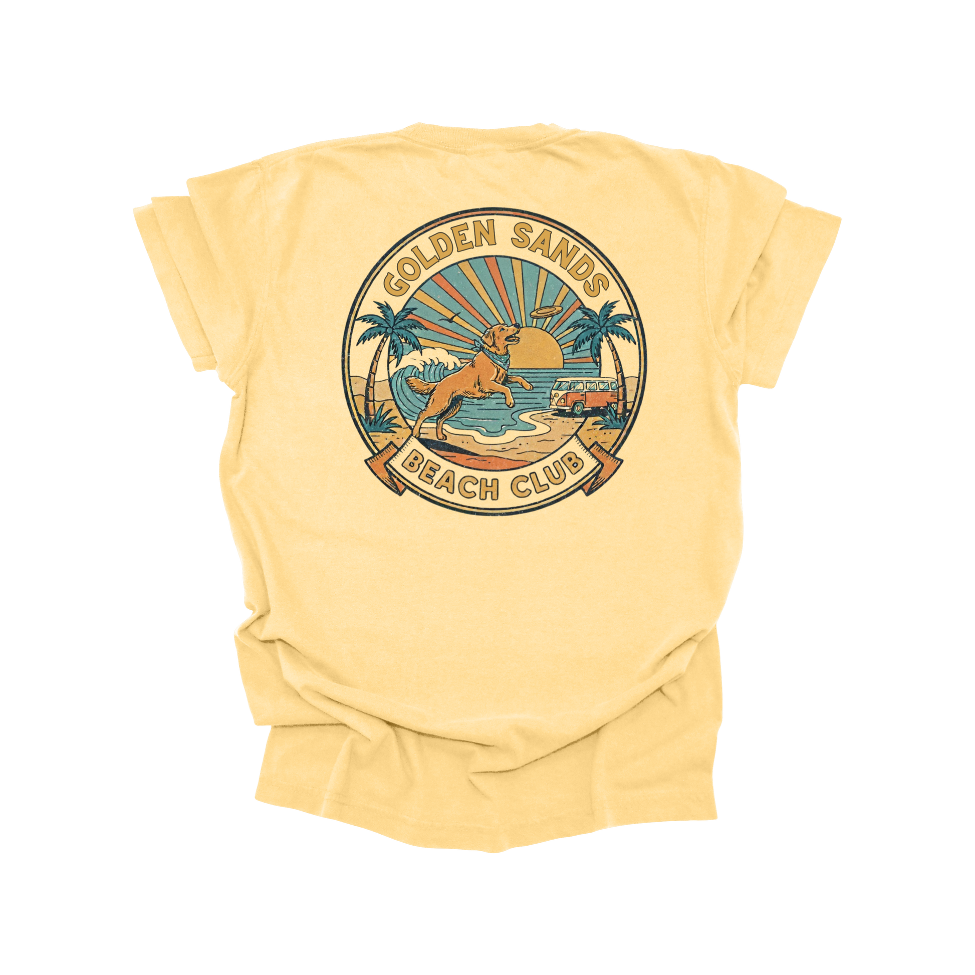 Golden Sands Beach Club T-Shirt | Retro Dog & Surf Style Tee